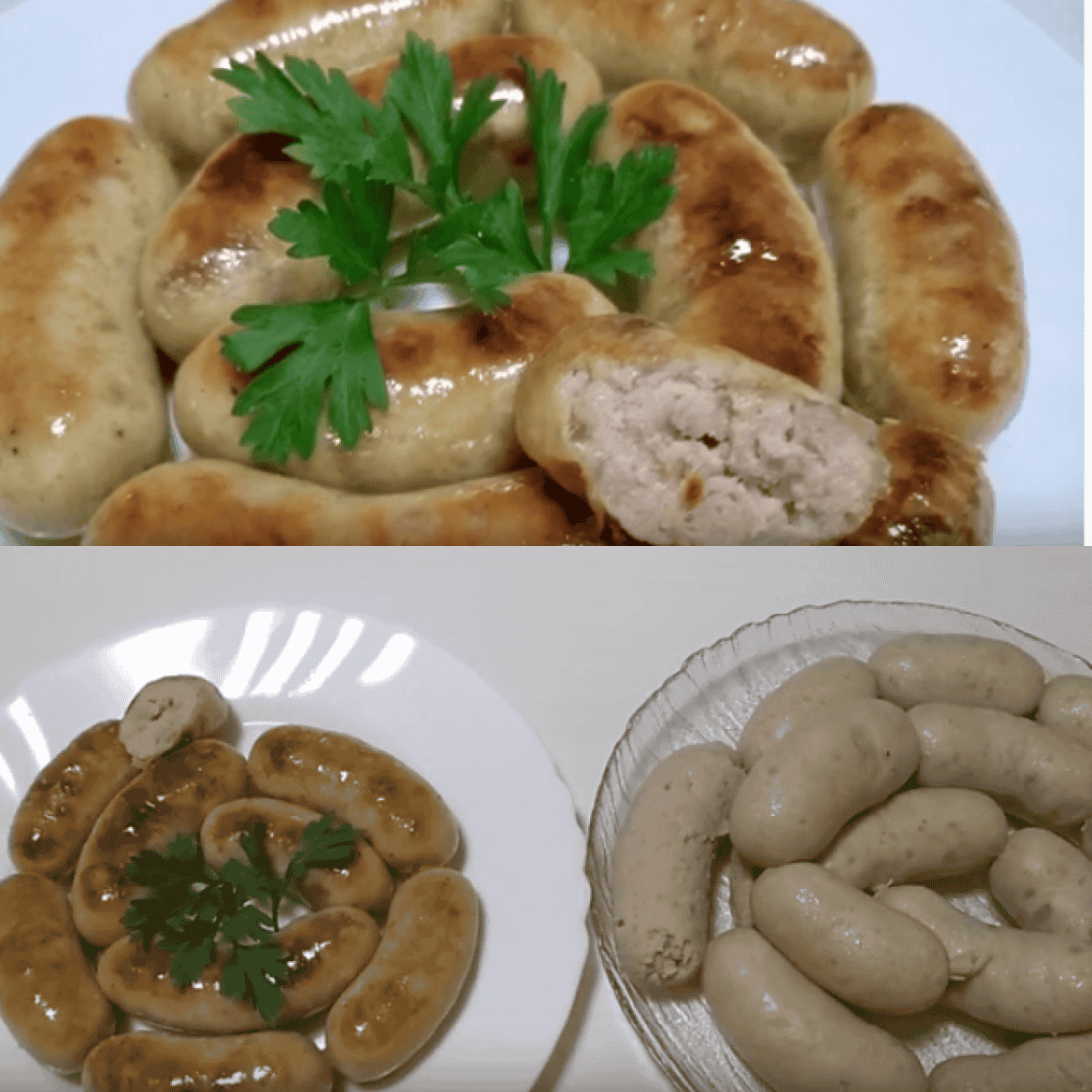 Ковбаски зварилися, дістаємо з води, даємо трошки підсохнути та обсмажуємо на сковорідці у жиру до золотистого кольору по 5 хв. з кожного боку.