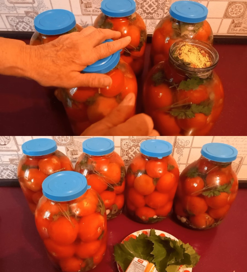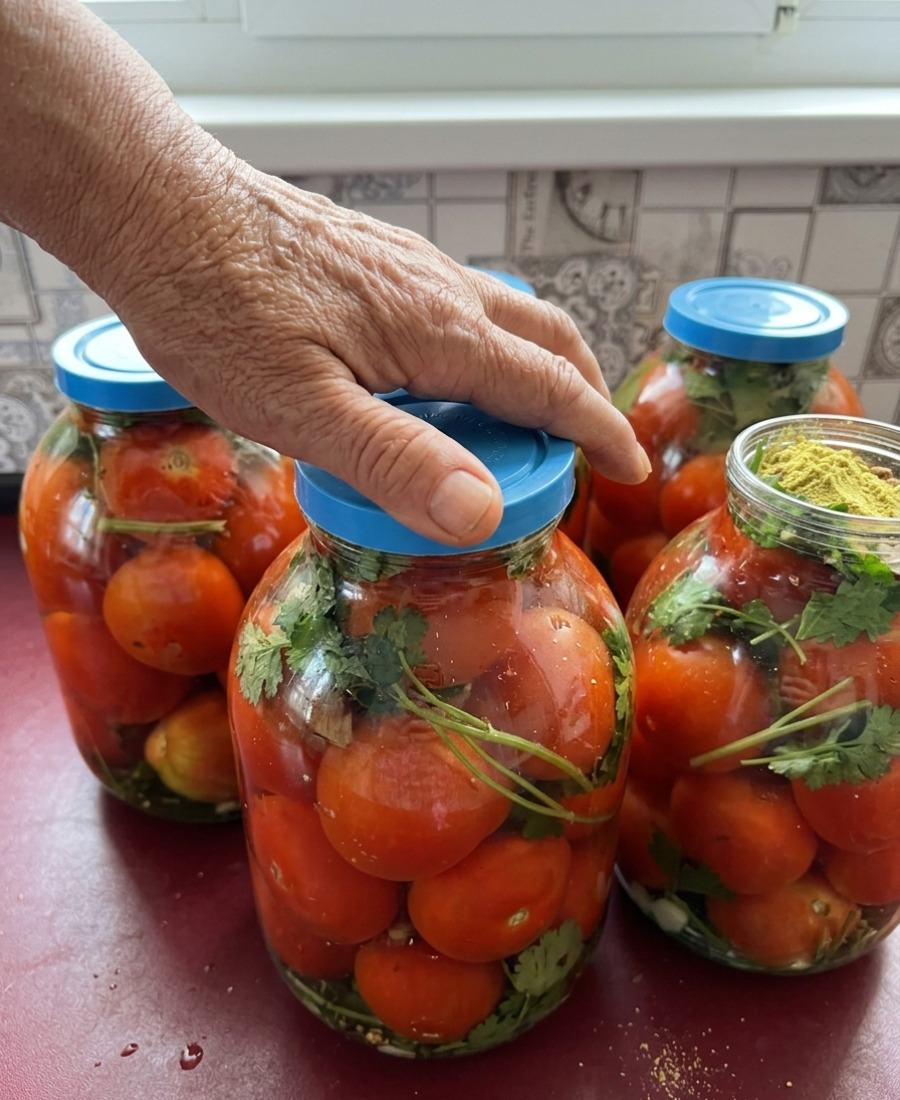 Чекати на розчинення гірчиці не потрібно. Залишається лише знову закрити помідори капроновими кришками і відправити на зберігання в льох.
