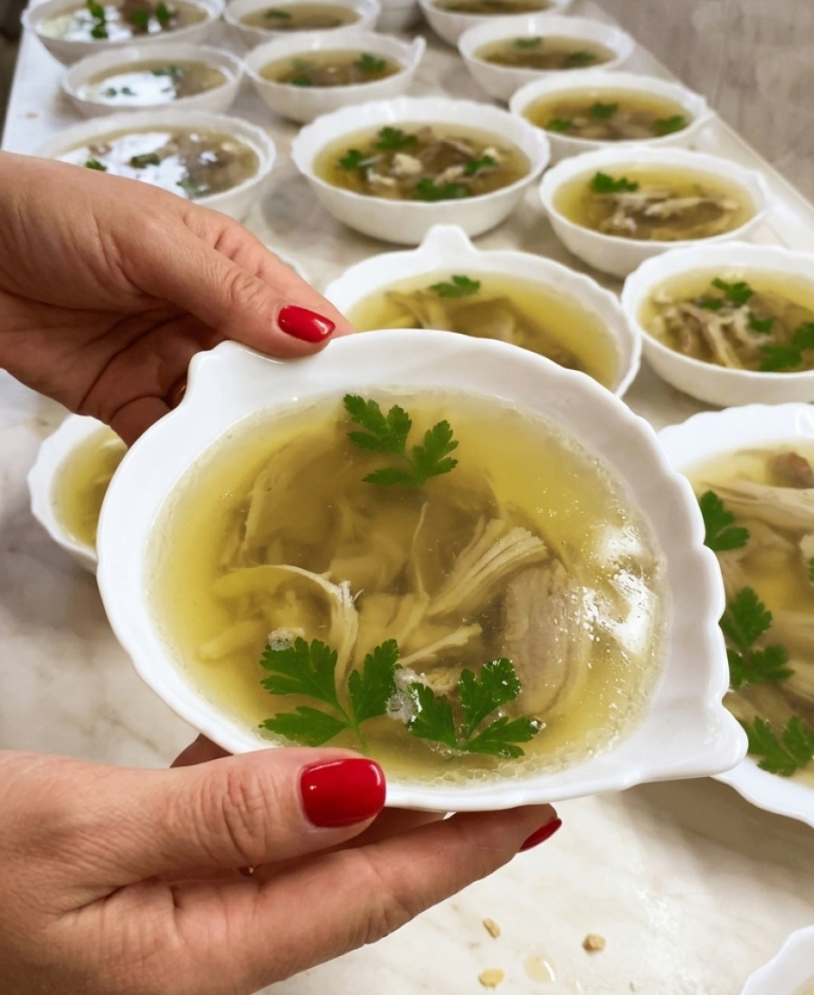 Розливаю бульйон по тарілочках і за бажанням можна додати в тарілочки петрушку.