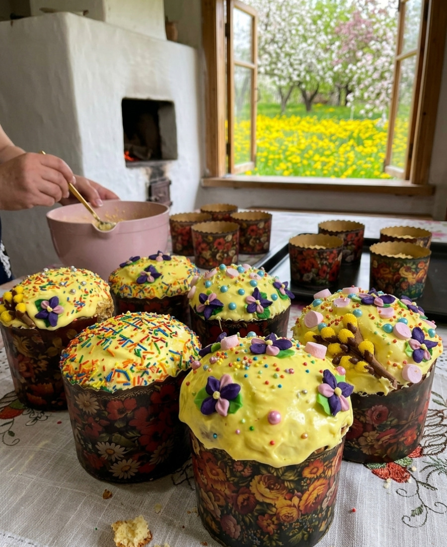 Після приготування можна прикрасити паски глазур’ю з білка та спеціальної суміші. Виходять прості та досить швидкі у випіканні паски.