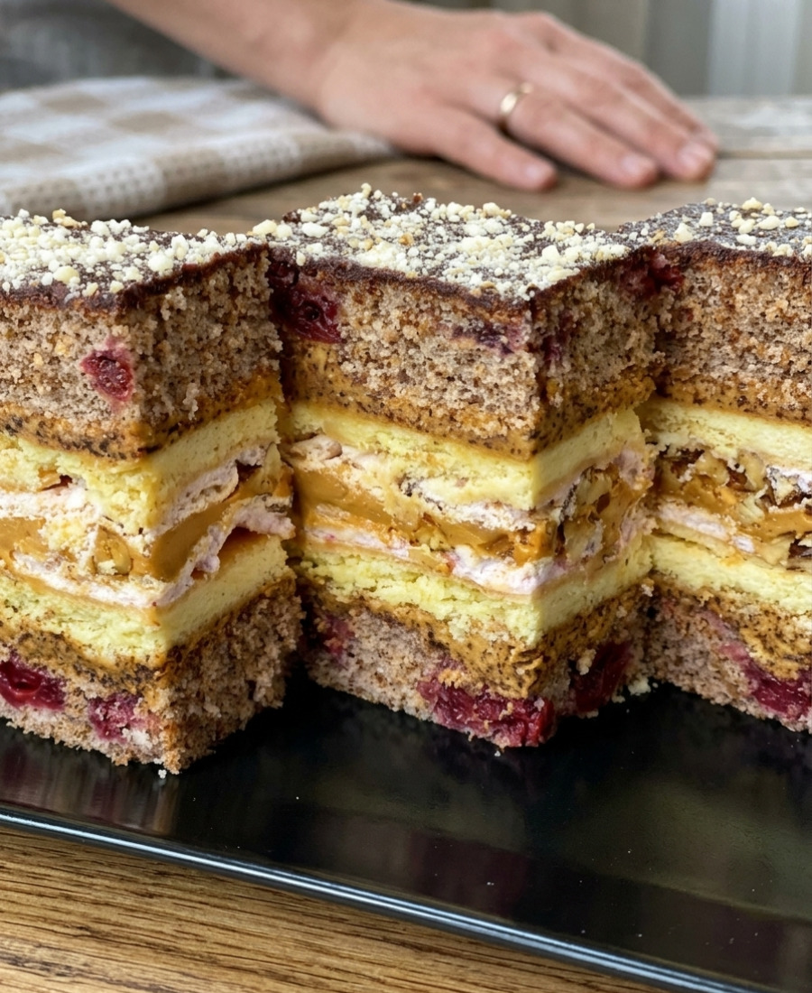 – горіхово-вишневий корж.3. У холодильник на 12-24 год та оздобити за бажанням.