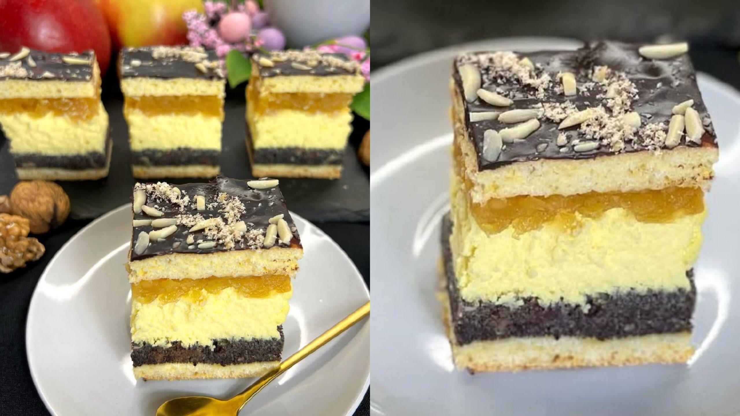 Пухкий сир, медово-сухофруктовий мак і шар підсмажених яблук – цей торт просто неймовірно смачний! 🤩