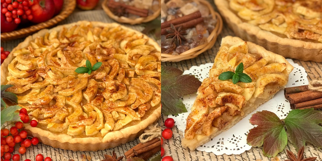 ЯБЛУЧНИЙ ПИРІГ НА ТОНКОМ ПІСОЧНОМУ ТІСТІ, В ЯКОМУ БАГАТО ЯБЛУЧНОЇ НАЧИНКИ.