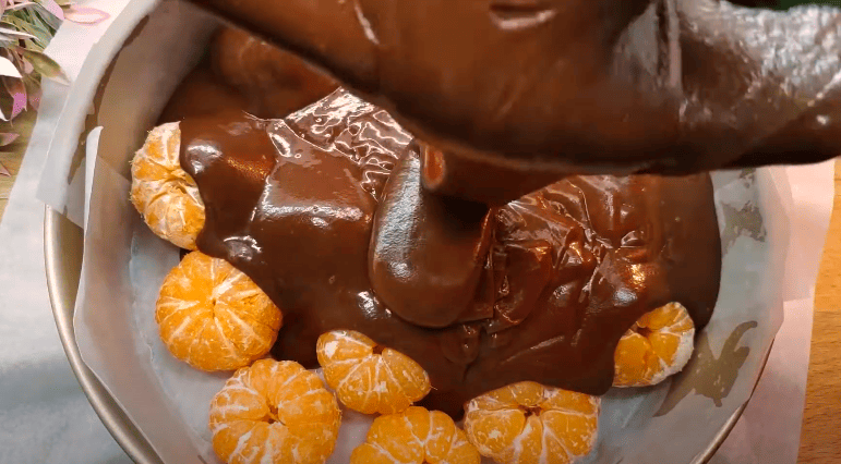 Дуже проста випічка, а яка це смакота! М’який, ніжний, що тане в роті, вологий шоколадний пиріг дуже смачний, глазур із насиченим шоколадним смаком. Як начинку використовуємо мандарини. Беремо солодкі мандарини невеликого розміру, без кісток.